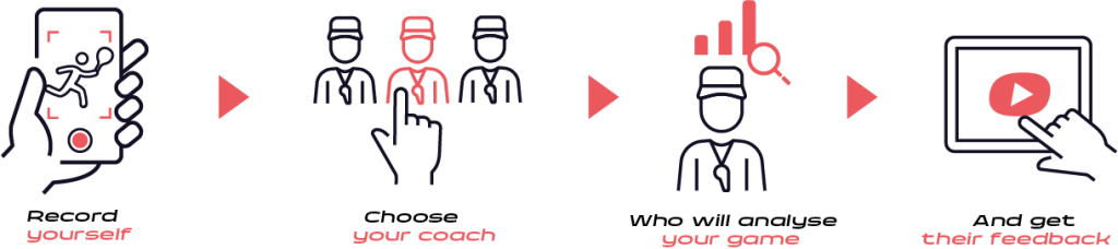 You record a short extract from one of your matches (ideally 20 minutes of actual play, or up to 30 minutes including breaks) and upload it to our platform. You can add your comments or highlight the game situations that cause you difficulties: positioning in defence, volley management, decision-making, risk-taking, and so on. Your questions and feedback are essential for the coach, alongside what they observe in your videos.